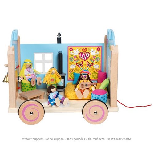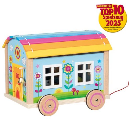 Ein abenteuerliches, trendiges Spielhaus – die perfekte Alternative zum Tiny House oder Puppenhaus. Dank gummierter Reifen auf Holzrädern lässt es sich ganz einfach auf lange „Reisen“ mitnehmen.