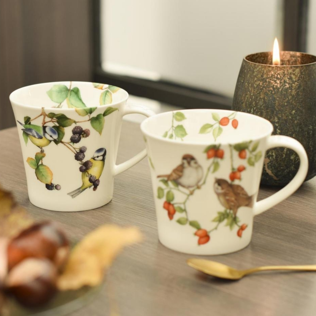 - Tasse mit detailreichem Spatzenmotiv