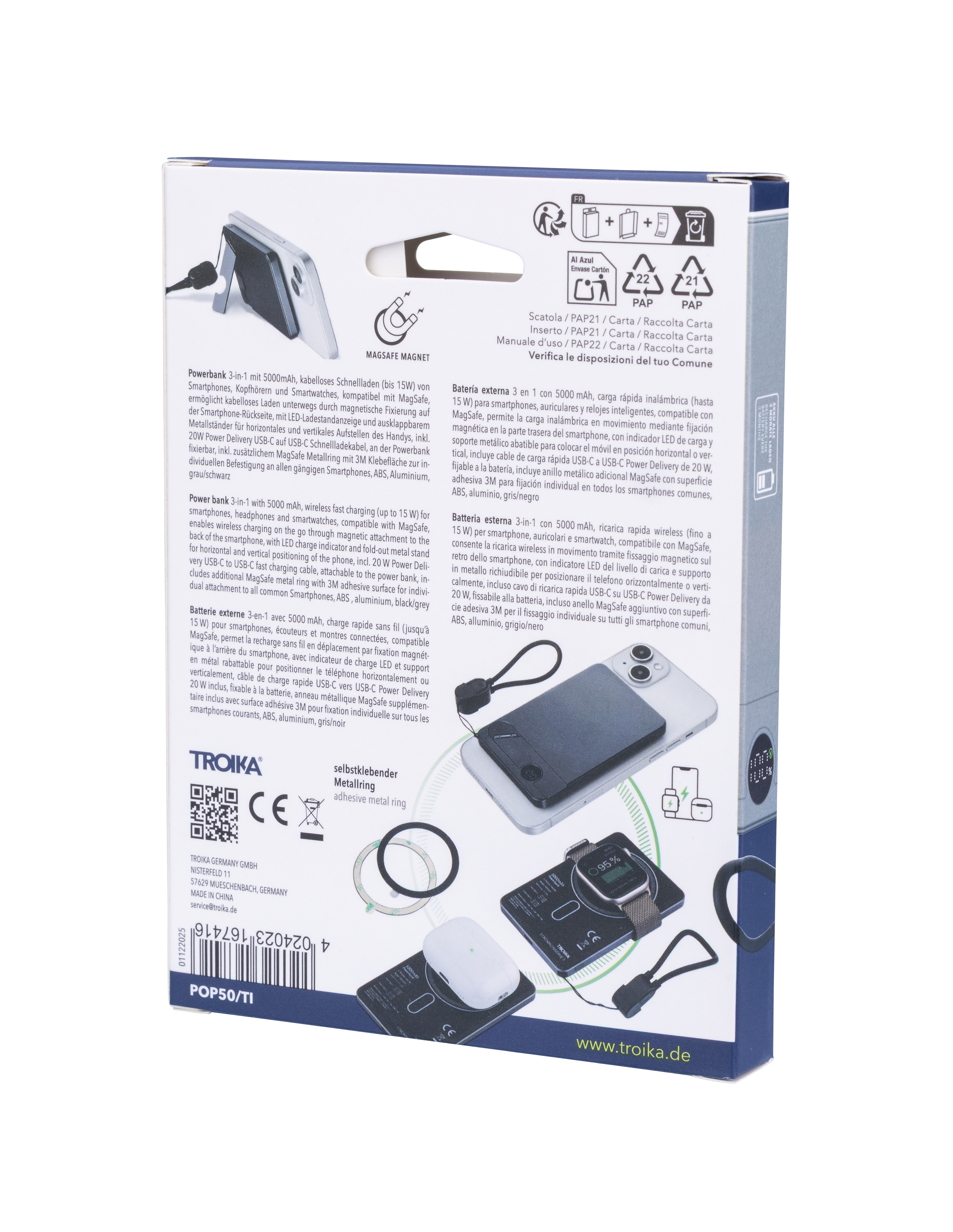 - Ladefunktionen: Kabelloses Schnellladen (bis 15 W), Kompatibel mit MagSafe (magnetische Fixierung am Smartphone)