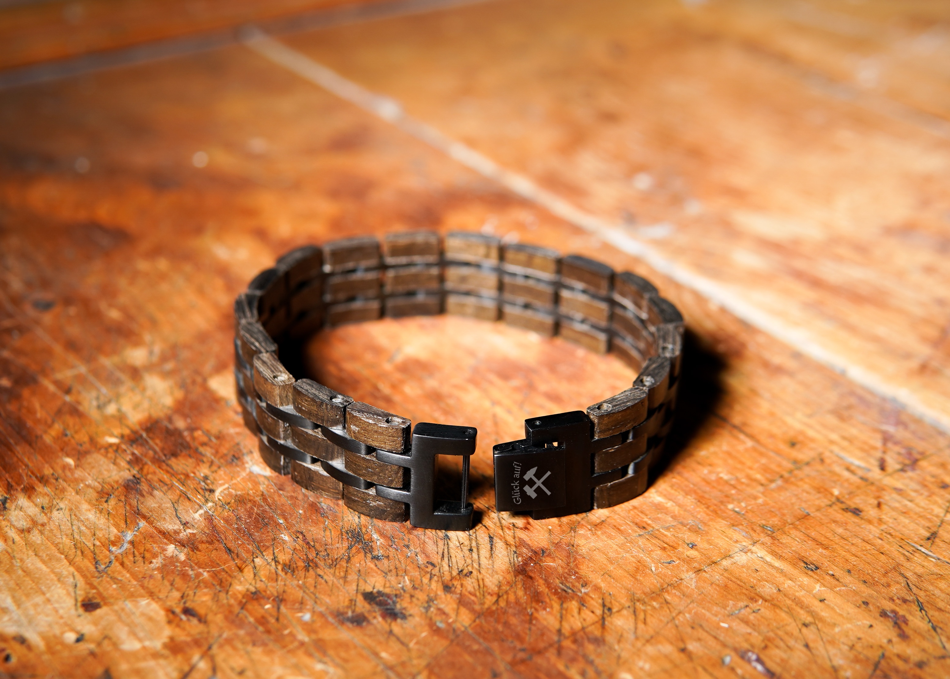 Das Armband für Herren ist mehr als nur ein Accessoire – es ist ein Zeichen der Freundschaft und Verbundenheit. Gefertigt aus originalem Grubenholz des UNESCO-Welterbes Zollverein Schacht XII und kombiniert mit schwarzem Edelstahl, strahlt dieses Armband für Kumpels eine besondere Eleganz aus.