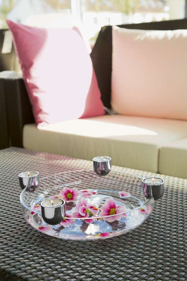 Die ARENA Schale vereint zeitloses Design mit vielseitiger Funktionalität. Mundgeblasenes Glas trifft auf polierten Chrom und schafft so eine elegante Basis für stilvolle Dekorationen. Vier abnehmbare Teelichthalter machen die Schale wahlweise zu einem modernen Adventskranz oder einem stimmungsvollen Lichtobjekt. Ob festlich inszeniert im Winter oder luftig-leicht als Obst- oder Schwimmschale im Sommer – ARENA passt sich jeder Jahreszeit und jedem Anlass mühelos an. Durchdachte Verarbeitung und hochwertige Materialien unterstreichen den besonderen Charakter dieses wandelbaren Wohnaccessoires.