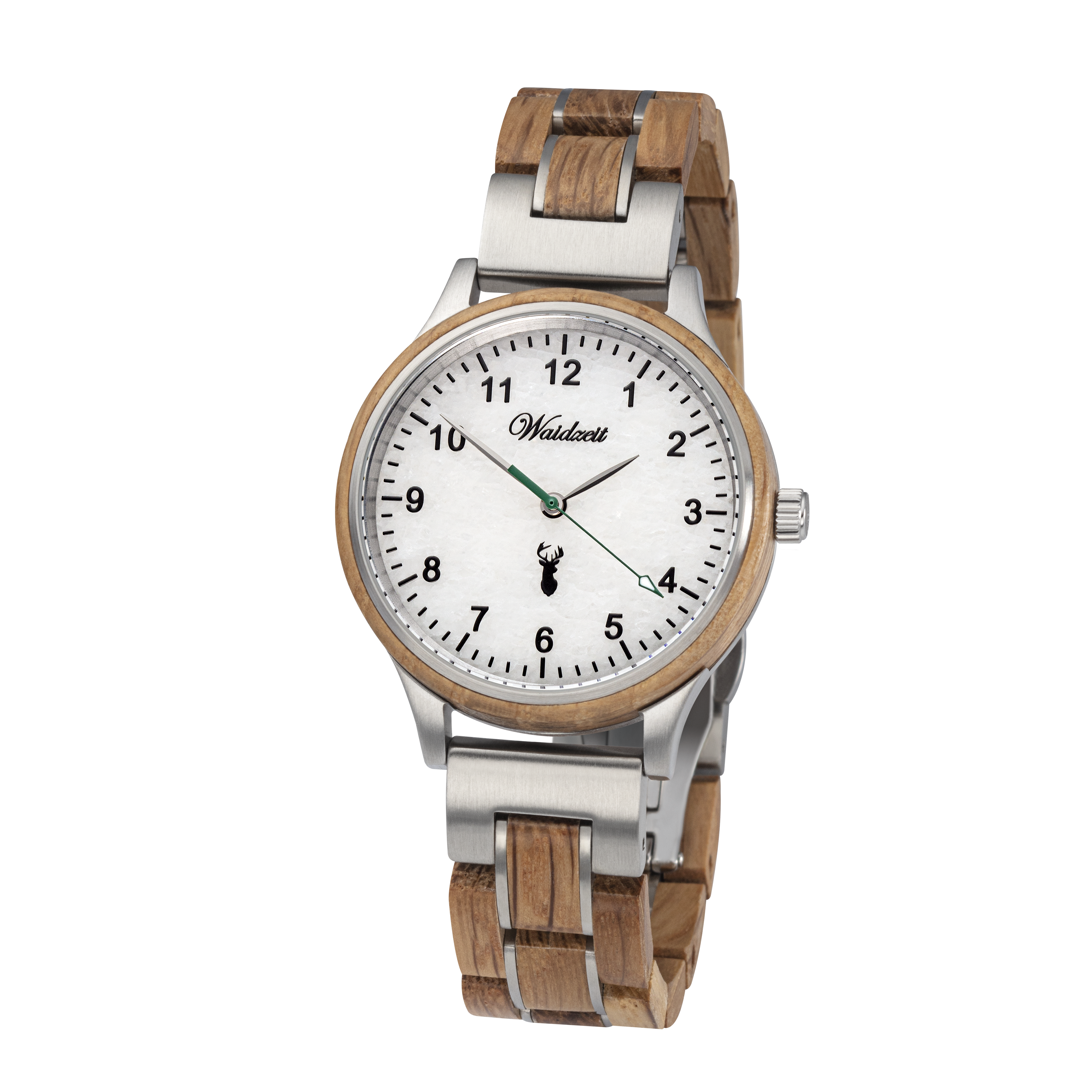 Diese Holzuhr für Damen, gefertigt aus echtem steirischem Weinfass, fasziniert durch ihre Extravaganz und verkörpert sowohl das grüne Herz Österreichs als auch eine tiefe Verbundenheit mit der Natur. Das Barriqueholz aus Eiche, das über viele Jahre zur Weinreifung diente, wird nun zu einem exquisiten Meisterwerk fürs Handgelenk weiterverarbeitet. Diese Uhr ist ein edles Unikat mit einem stilvollen Ziffernblatt aus Sölker Marmor, das ihr einen besonders eleganten Charme verleiht. Der grüne Sekundenzeiger symbolisiert das steirische Wappen und unterstreicht die regionale Bedeutung. Ein absolutes Must-have für heimatverbundene Frauen mit Stil.