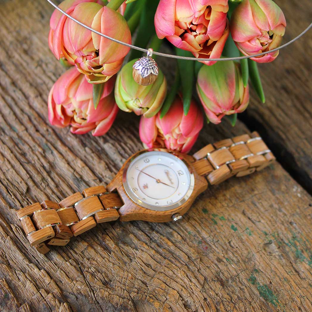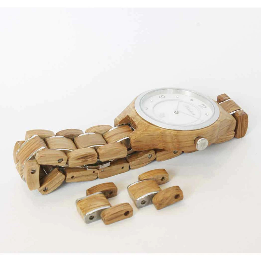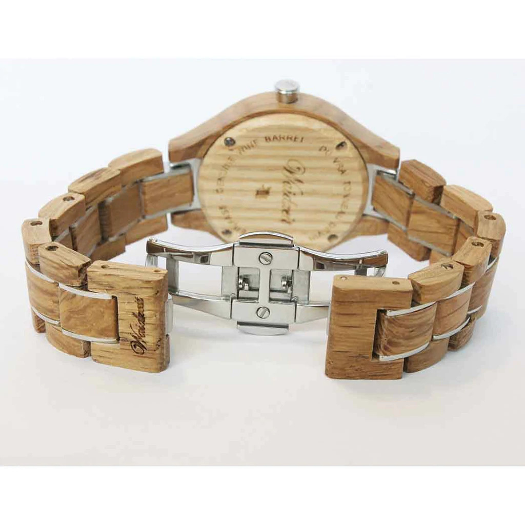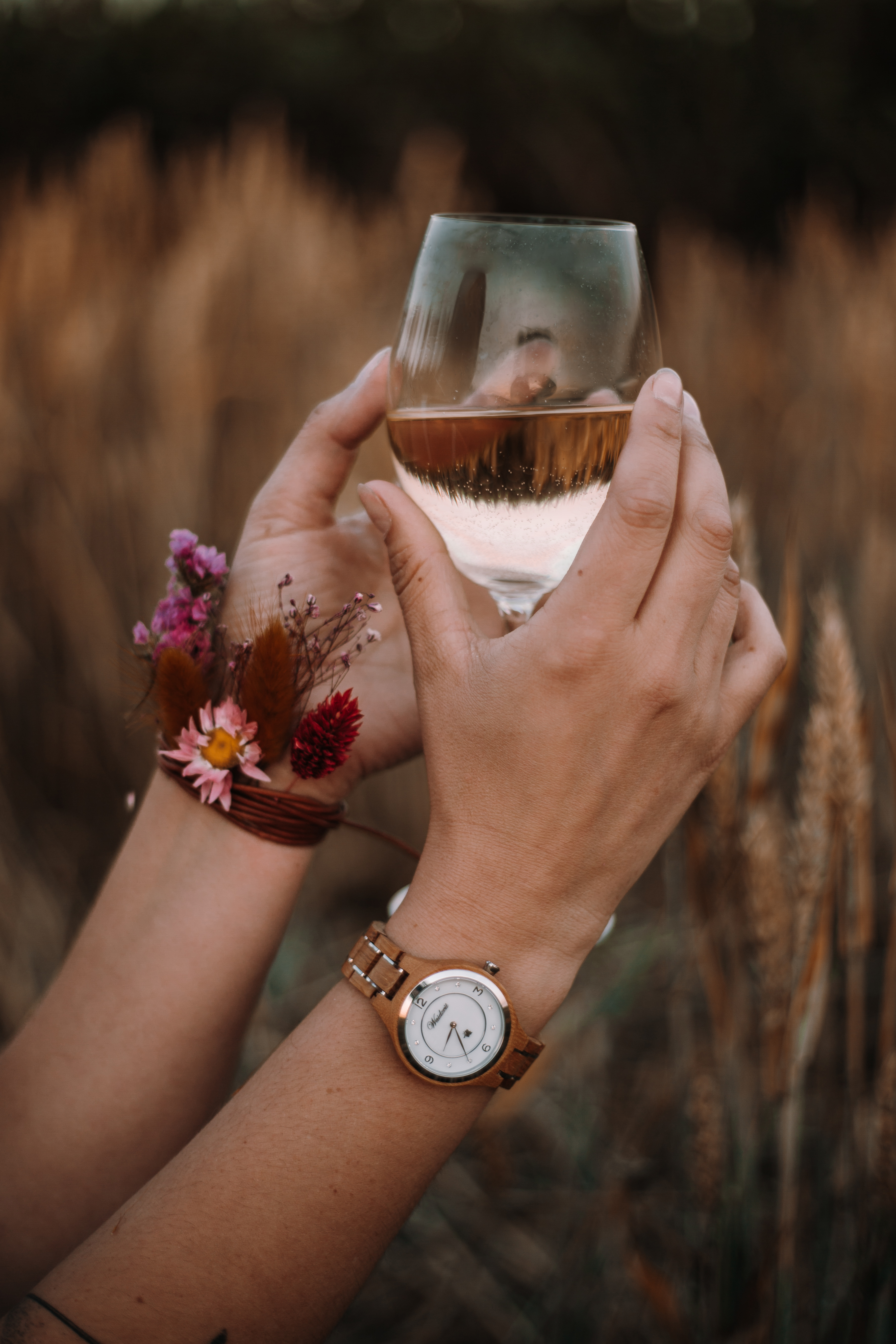 Des Weiterin werden die Holzelemente dieser Uhr aus original Barrique Weinfass hergestellt. Somit entstehen daraus wunderschöne Zeitmesser für die Dame. Jede Weinuhr erzählt ihre eigene Geschichte und ist ein perfekter Begleiter für jede Natur- und Weinliebhaberin!