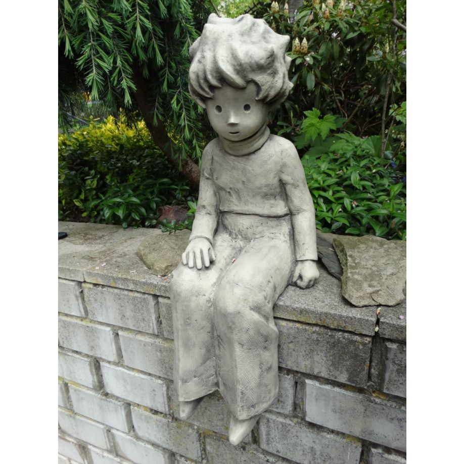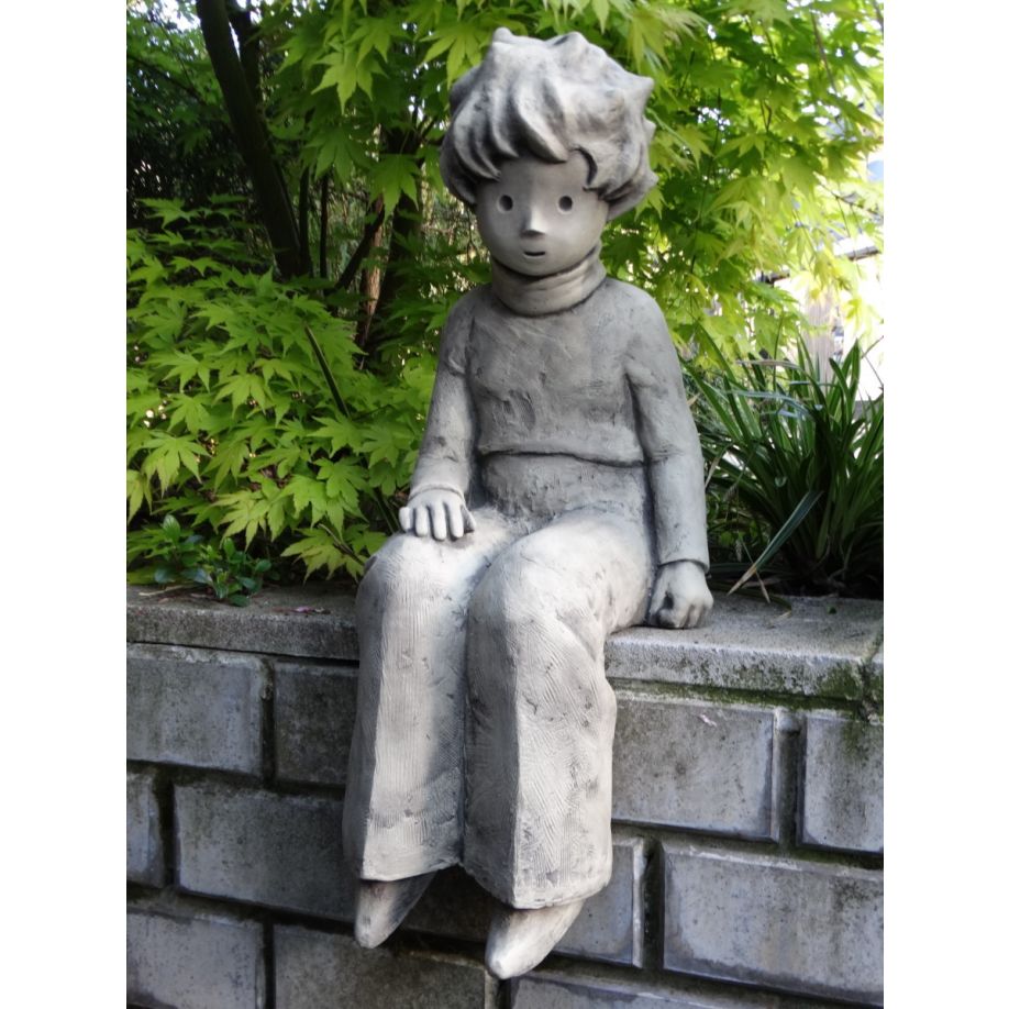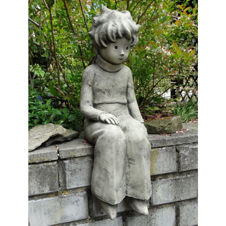 Gartenskulptur | Kunststein | Der kleine Prinz Kantenhocker – © Antoine de Saint-Exupéry