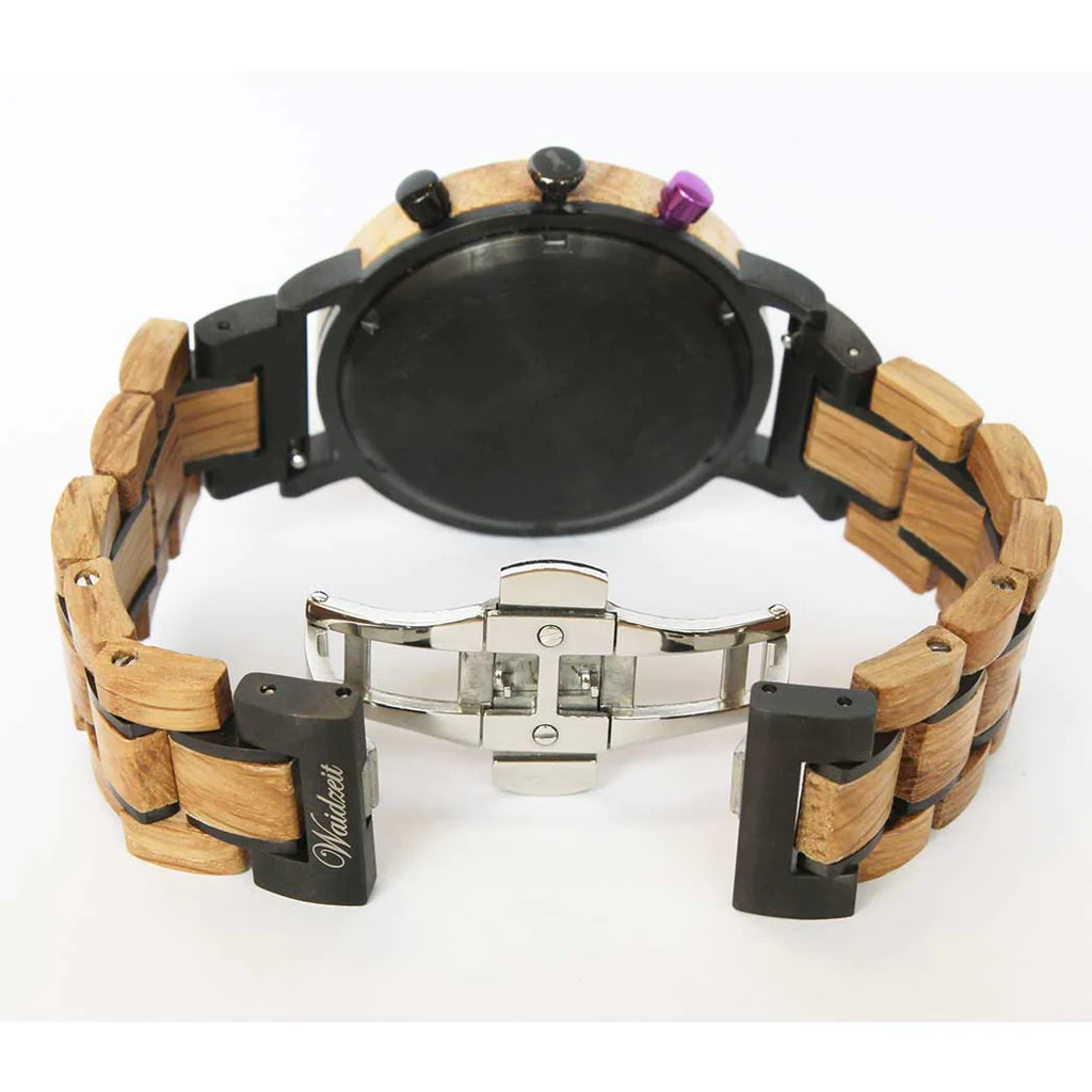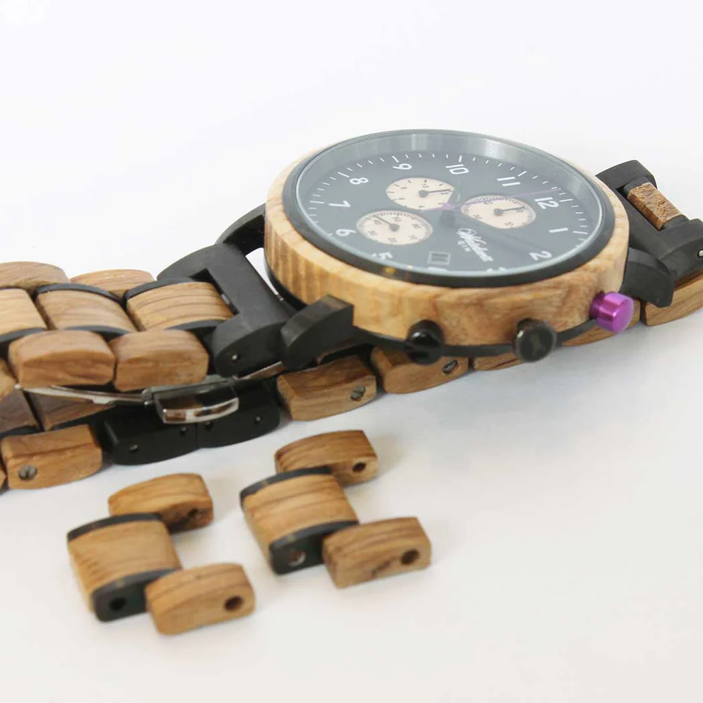 - Ziffernblatt aus Wacholderholz Holzarmband mit Edelstahl verstärkt