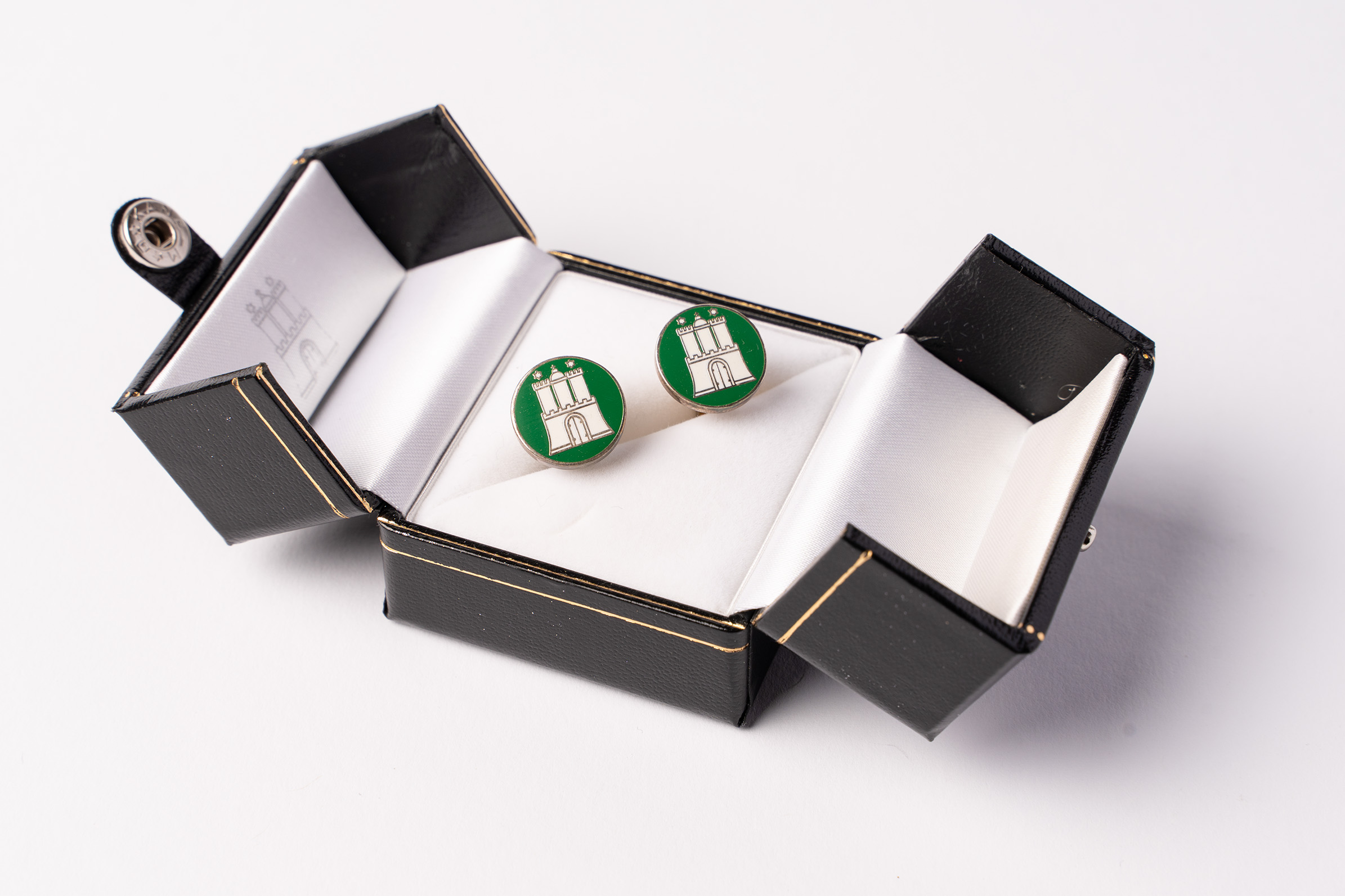 Die stilvollen Manschettenknöpfe „Hamburg“ sind ein dezentes Statement für alle, die ihre Verbundenheit zur Hansestadt mit Stil zeigen möchten. Das zeitlose Design in dunkelgrün oder grau verleiht jedem Outfit eine besondere Note – ob im Business-Look oder zu festlichen Anlässen.