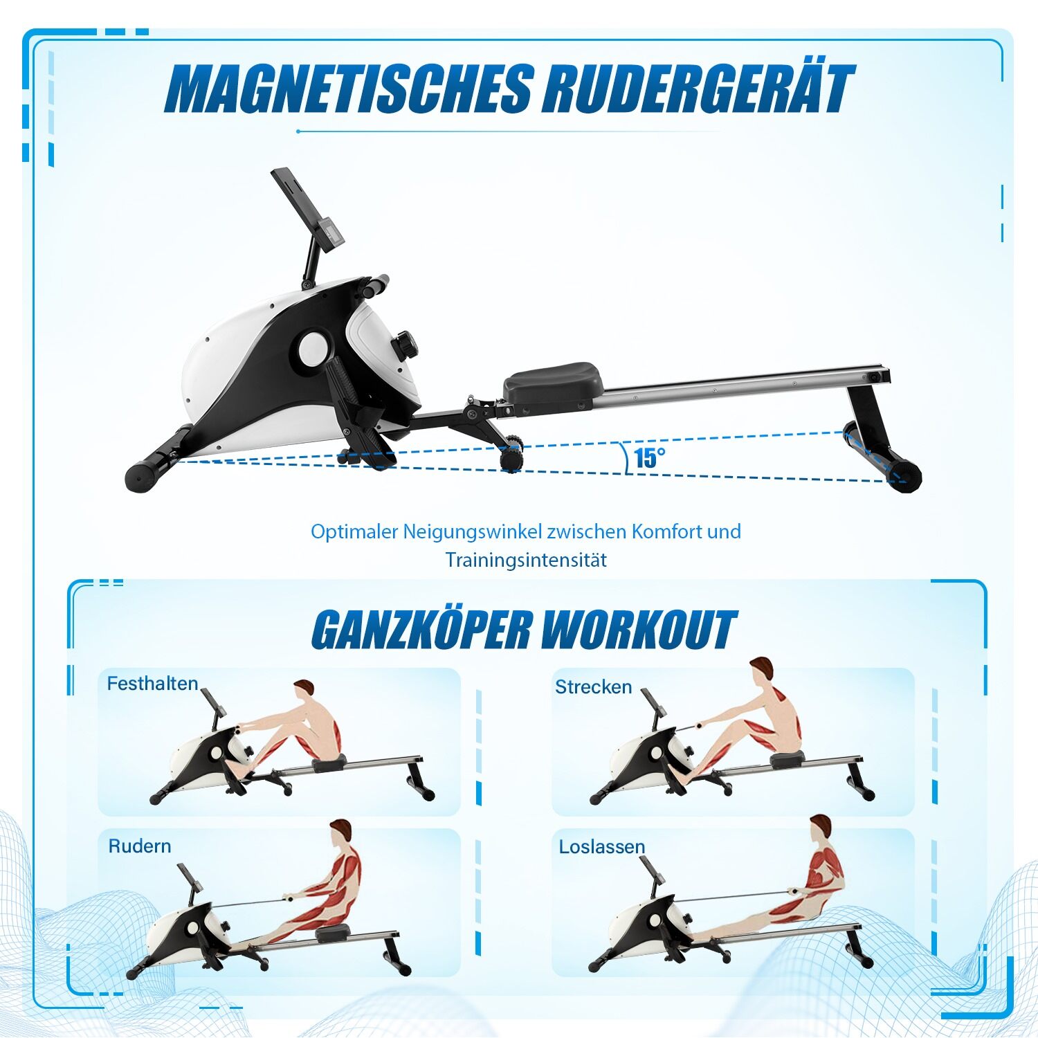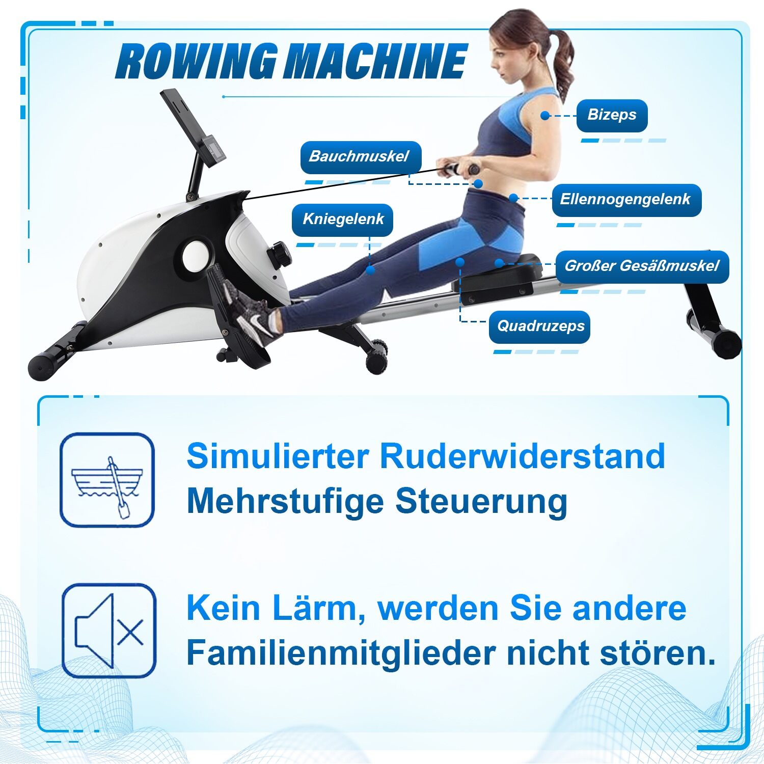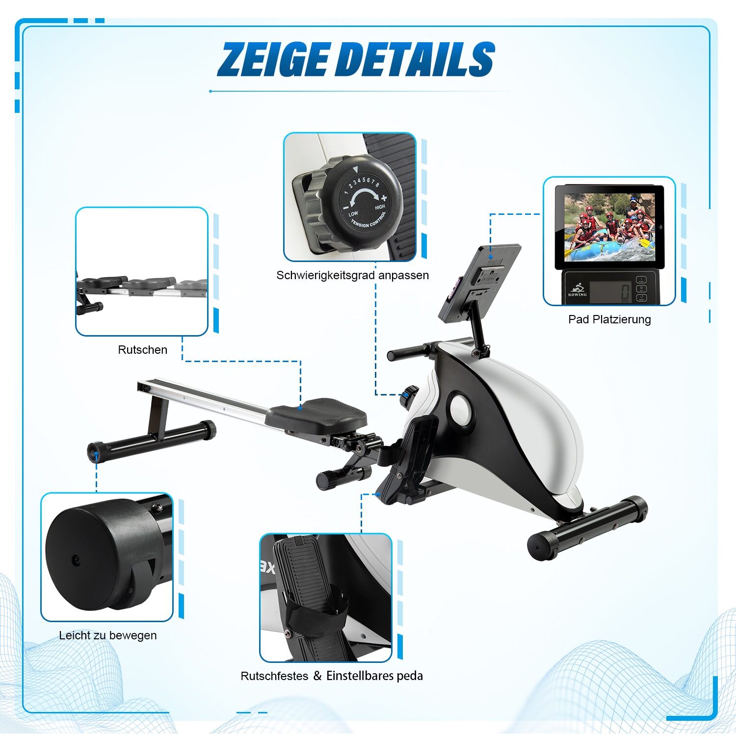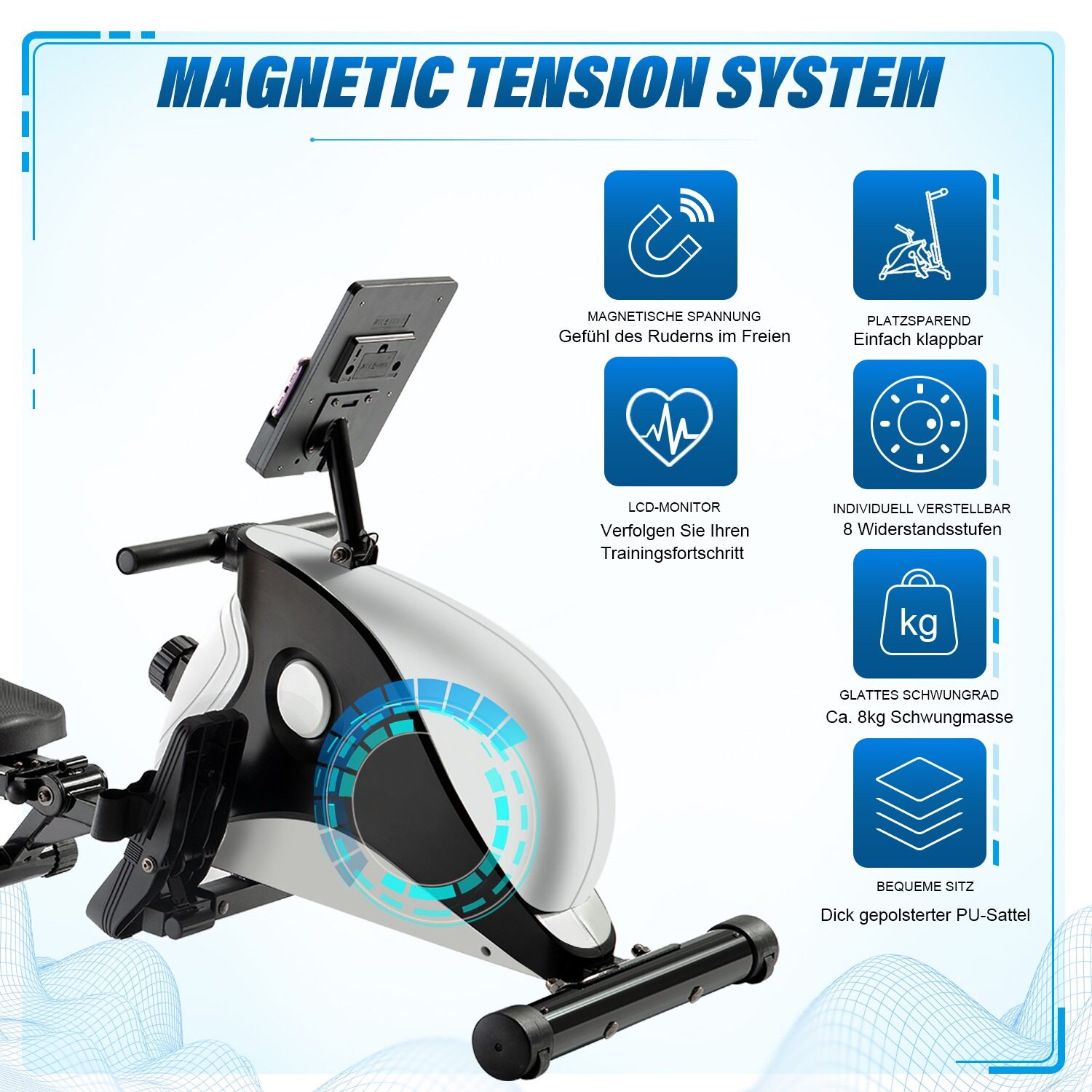 Das innovative magnetische Rudergerät ermöglicht ein sehr effektives Ganzkörpertraining in den eigenen vier Wänden. Dieses Indoor-Faltrudergerät ist mit einem fortschrittlichen magnetischen Bremssystem ausgestattet, das eine sanfte und geräuschlose Rudererfahrung bietet.