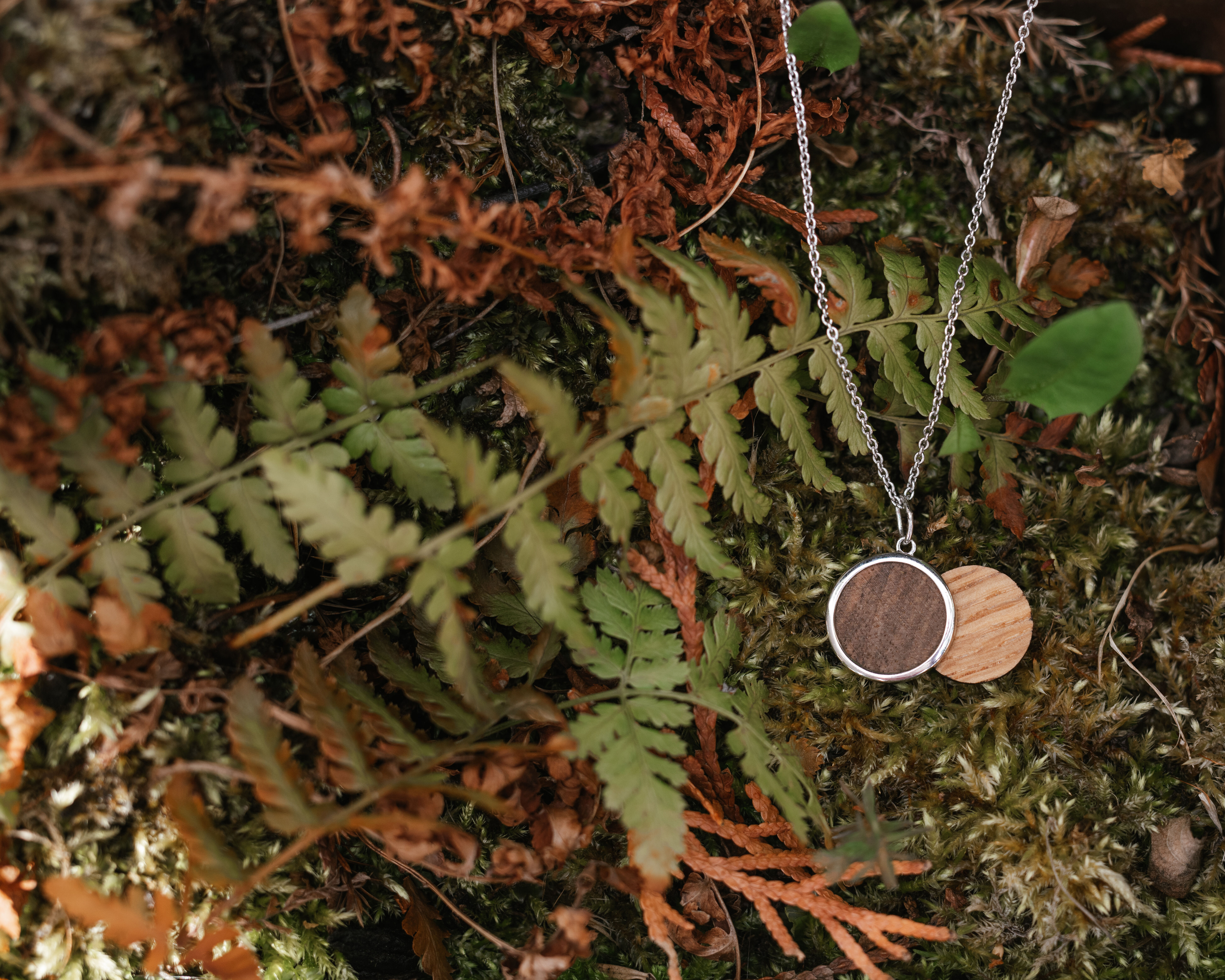 Durch die Verwendung edlem Eichenfassholzes, sowie Sterlingsilber - hat der Schmuck eine besonders hohe Wertigkeit.