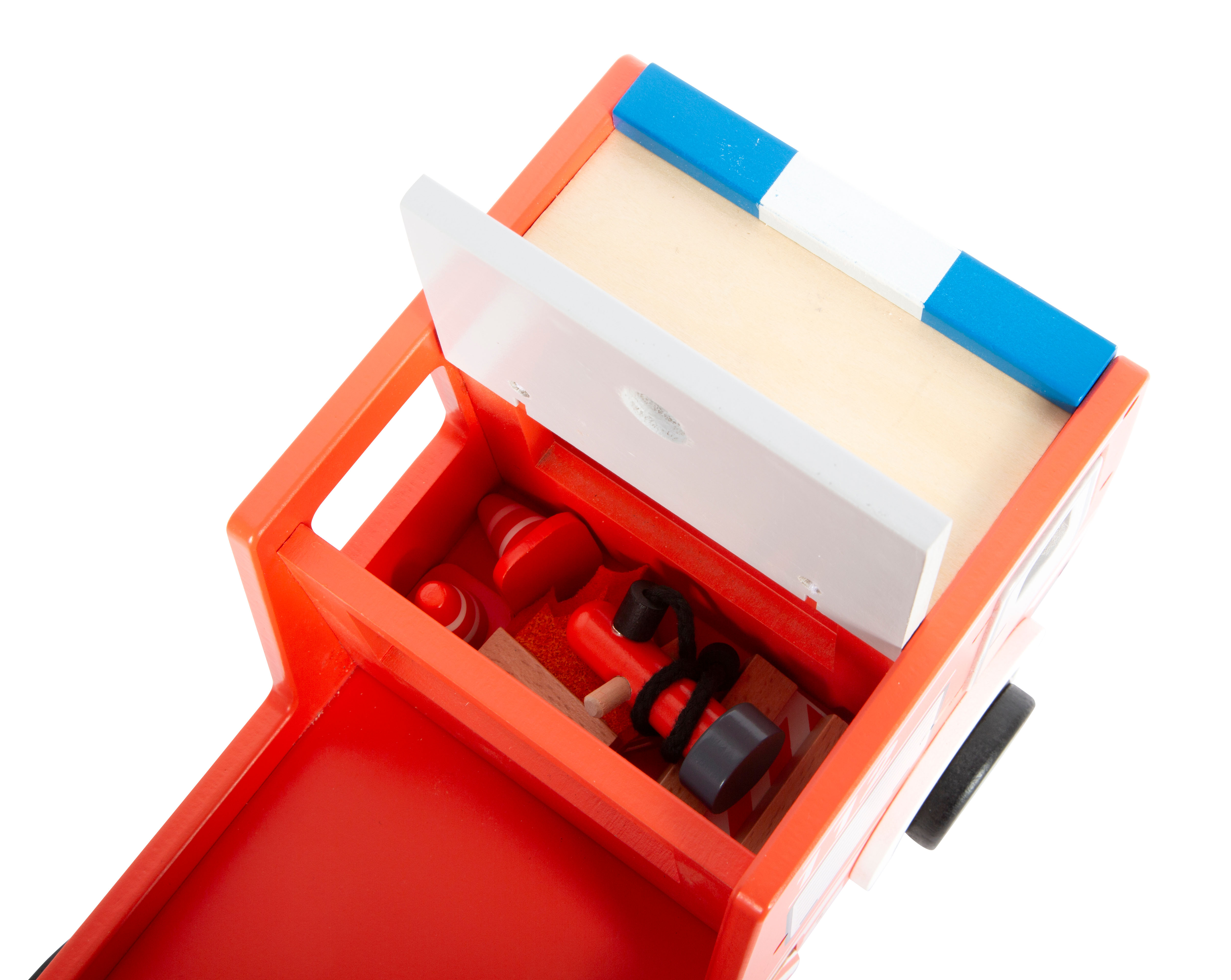 - Bewegliche Türen & transparente Acryl-Windschutzscheibe – wie beim echten Feuerwehrwagen